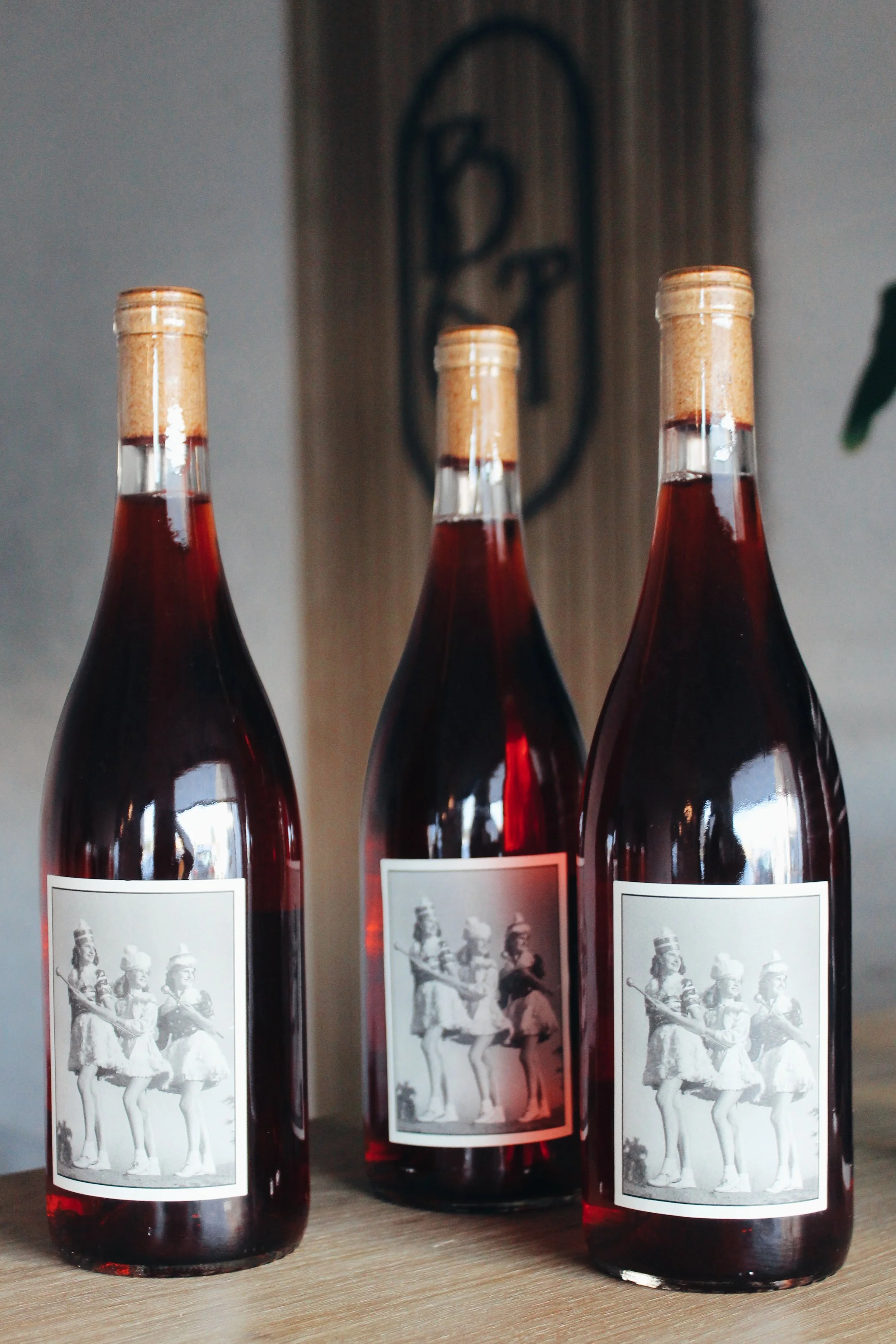 The 2021 vintage will forever live in my mind as a stellar vintage in the vineyard and in the bottle. Acidity is racy due to the moderate temps and consistently cool nights, and complexity is high due to the warm afternoons and long hang time. Nolan Vineyard, located in the recently minted Alisos Canyon AVA is meticulously farmed and dedicated to esoteric varieties; Gamay may be their most mainstream planting. This wine is light and spicy, fresh and fruity and excellent slightly chilled on a sunny patio. The label for this vintage features Ada in her homemade turkey feather dress, with her friends in the Ramona turkey parade. The daughter of a turkey farmer, she learned to sew and used farm materials to create beautiful designs. She even crafted a turkey egg bikini which was the height of ranch fashion.