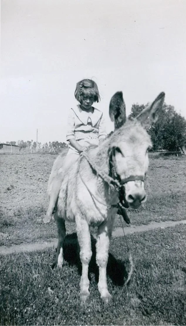 This electric magenta, juicy, savory gamay celebrates my Grandmother, Ada. Grapes were harvested on September 2, 2020, which would have been her 93rd birthday. From her favorite place, Santa Barbara County, this wine was made in a low-intervention style with no additives, and bottled unfined and unfiltered. The label for this vintage features Ada on her childhood pet, a donkey named Maude. As you can she, Ada had a scowl that could light your soul on fire, but also smiled a lot more than this photo suggests!